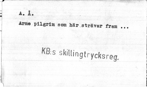 //// A . Å • //// Arme pilgrim som här strävar fram ... //// I i //// KB-s skillingtrycksreg. //// i ////