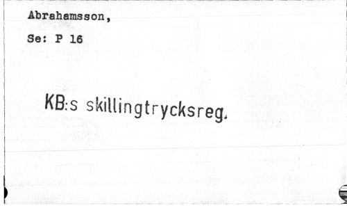 //// Abrahamsson, Se: P 16 //// j //// b V'-;-- ::r t- //// J KB.s skillingtrycksreg, ////