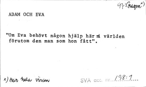 //// ADAM OCH EVA //// "Om Eva behövt någon hjälp här ii världen förutom den man som hon fått". //// *)lWv ^^ viftww SVA cc: ////