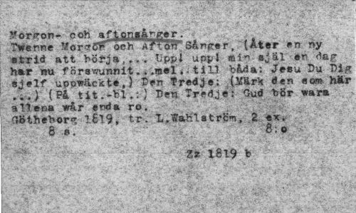 //// "ori^or- coh aftormfrfiffn» //// T*enne MorrC? och aM'ö¥TSånger, (Åter en ny strid att börja ... . TJppJ upp! själ en dag- //// har ru f nrswunnit. . .mel». t iXI båda: Jesu Du Di* sjelf uppräckte } Ten Tredje; (Tär* den här ...) [ tå t it.-bl.:; Den Tredje: Gud bör wara h il ena war enda ro. //// aöthebor- 1619, tr. L.Wahiatrc-i, 2 ex. 8 «• B:o //// Zz 1819 b ////