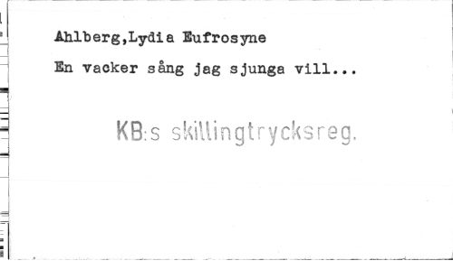 //// Alirberg,Lyaia Eufrosyne En vacker sång jag sjunga vill... //// KB s skiilingtrycksreg. //// = ////