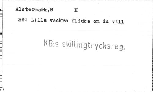 //// n Alstermark,B H //// " Se: Lilla vackra flicka om du vill i //// KB:s skillingtrycksreg-, //// i ////