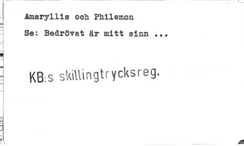 //// Amaryllis och Philemon //// Se: Bedrövat är mitt sinn ... //// " KB.s skiUingtrycksreg. ////