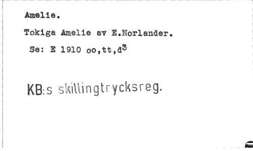 //// Amelie. //// Tokiga Amelie av E.Norlancler. Se: E 1910 0o,tt,ä3 //// KB:S skillingtrycksreg. ////