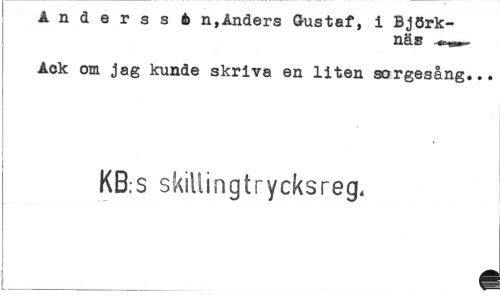 //// Ånderssib n, Anders Gustaf, i Björknäs //// Ack om jag kunde skriva en liten sorgesång... //// KB:S skillingtrycksreg, //// i ////