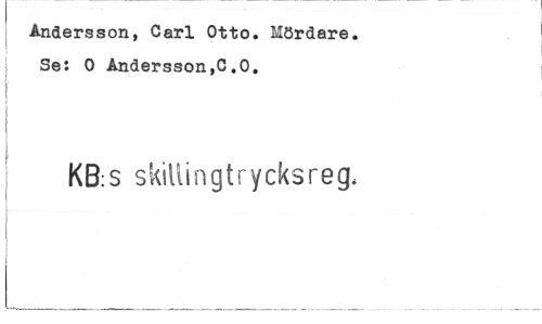 //// Andersson, Carl Otto. Mördare. Se: 0 Ändersson,C.0. //// KB:S skillingtrycksreg. ////