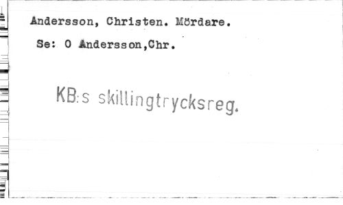//// ¦ Andersson, Christen. Mördare. Se: 0 Andersson,Chr. //// I KB.s skillingtrycksreg. //// i1 _ ___ ////