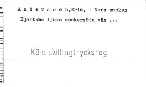 //// : Andersso n,Eric, i Nors socken Hjärtans ljuva sockersöta vän ... //// = KB s skillingtrycksreg. //// i ////