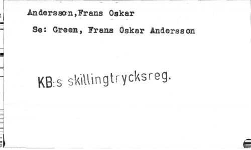 //// Anders son, Fr ans Oskar Se: Green, Frans Oskar Andersson //// KB:S skillingtrycksreg. //// ___ i ////