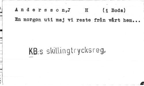 //// j Åndersso n,J H (i Boda) j In morgon uti maj vi reste från vårt hem... //// KB;S skillingtrycksreg, //// A ////
