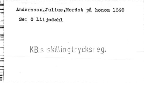 //// =J - - //// B Andersson,Julius»Mordet på honom 1890 //// H //// j Se: 0 Liljedahl //// 3 //// 1 KB.s skillingtrycksreg, //// = //// _ ////