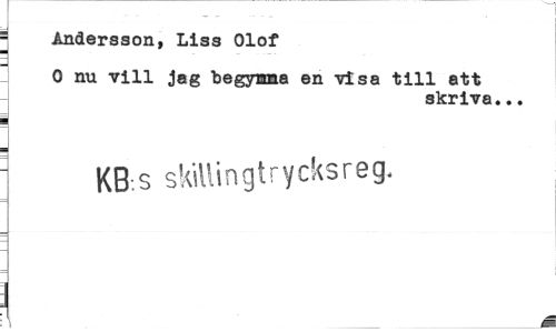 //// | Andersson, Liss Olof //// 0 nu vill jag begymma en visa till att //// skriva... //// KB.s s killin gt rycks reg* //// a ////