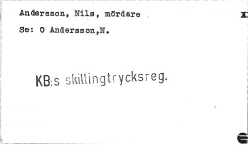 //// Andersson, Nils, mördare I //// Se: 0 Andersson,IT, //// KB-.s skillingtrycksreg. //// k___ i ////