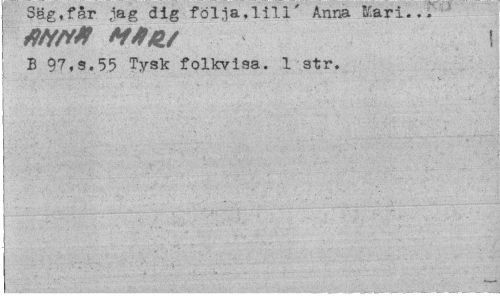 //// Säg,får Jag dig folja.lill' Anna Karl... //// MV* ! //// B 97,s.55 Tyslc folkvisa. 1 str. ////