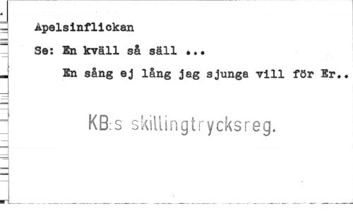 //// 3 Åpelsinflickan //// Se: En kväll så säll •.. //// En sång ej lång jag sjunga vill för Er.. //// - KB:S skiilingtrycksreg. ////