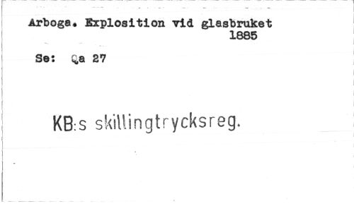 //// Arboga. Explosition vid glasbruket //// 1885 //// Sel ^a 27 //// KB:s skill i n g t r y eks reg* ////
