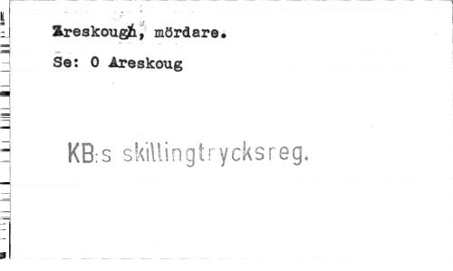 //// L ' tf //// Ireskougt, mördare. //// Se: 0 Areskoug //// J //// 1 //// i - //// - KB:S skillingtrycksreg, //// i _ _ _--- ////