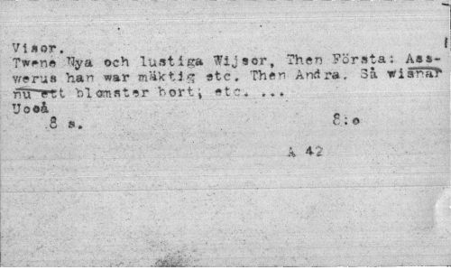 //// Vittor. I //// Twne och lustiga Wijsor, Then Första; Ass- //// Yffns ha" war mäktig stc, Then Andra. 3å wis-raV ml rtt blomster bort i etc. ... Uo*i //// S s. cc:o //// k 42 //// ¦ • . - -•¦•Äi.A": ////