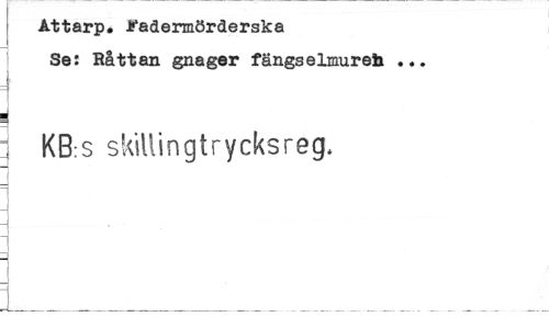 //// Attarp. tfadermörderska Se: Råttan gnager fängselmurefc ... //// KB:s skillingtrycksreg. ////