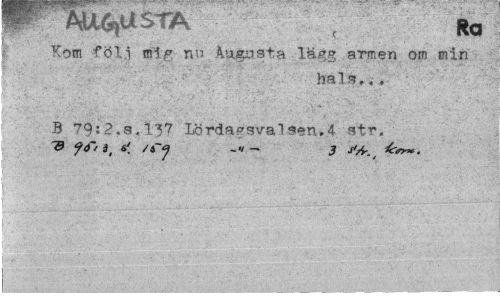 //// mc^x STA Ra //// Kom föl.i mig nu Augusta.lägg armen om min //// hals... //// * B 79:2.s.l3? Lörda^sval^en.4 str. -B fö~ a( 3 ////