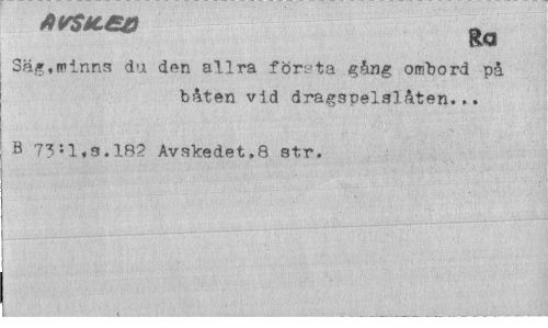 //// Säg,minns du den allra företa e,hng ombord på //// båten vid dragspelslåten... //// B 73*. 1,3.182 Avskedet.8 str. ////