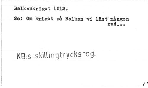 //// Balkankriget 1912. //// Se: Om kriget på Balkan vi läst mången //// rad... //// KB:S skillingtrycksreg. ////