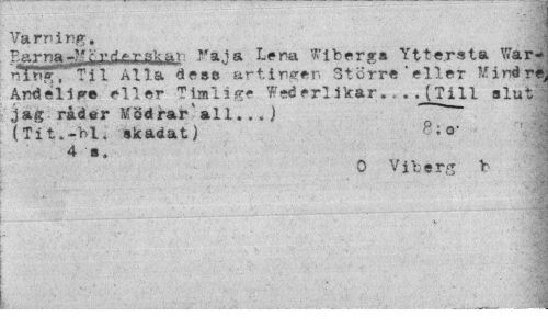 //// Va rr> i r<g. //// Earna-Mrvff^v^^v- ?faja Lera Wibergs Yttersta ¥ar| nltTg, Til Alla dess artirger. Större'eller Mindrl Amäelire eller Timläge Wederlikar... (Till slut jag råder Mödrar' all..,) //// (Tit.-'bl. akadat) p'0- //// 4 s. //// 0 Viberg b ////