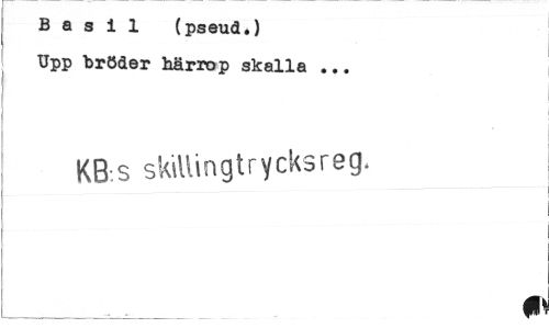 //// B a s i 1 (pseud.) //// Upp bröder härrop skalla ... //// KB:s skillingtrycksreg. ////