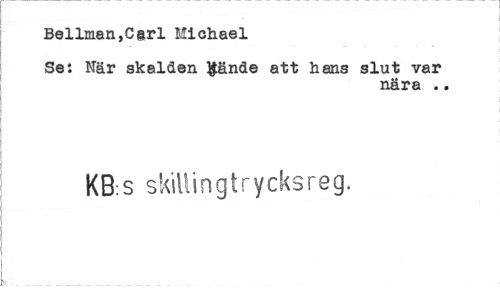 //// Bellman,C§rl Michael //// Se: När skalden #ände att hans slut var //// nära .. //// KB.s skiUingtrycksreg. ////