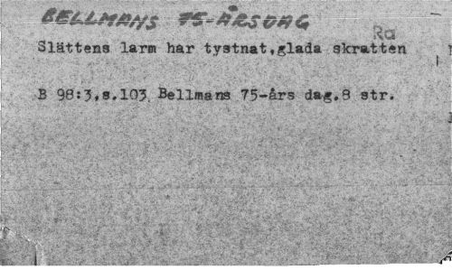 //// Slättens lar» har tystnat»glada skratten ^ B 98:3*8.103. Bellmana 75-års da^.9 str. ////