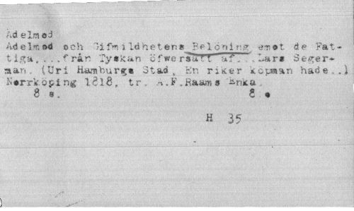 //// Ad el/ned //// Ad el t. od och lifVi ildhetens Belönlns enot de Fattiga, . . . f rån Tyskan '6 f we rsa"r* a?1. .Lar* Seger* si an, (Uri Hamburg» Stad, En ritter köpman hade..) KerrVoping 1818. tr. .n.F.JR&ams a nit o 8 e. ? « //// H 35 ////