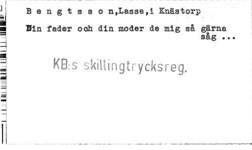 //// Bengtsso n,Lasse,1 Knästorp //// I Bin fader o (di din moder de mig så gärna - såg ... //// skillingtrycksreg. //// 1 //// g //// B //// 1 //// J //// H ////