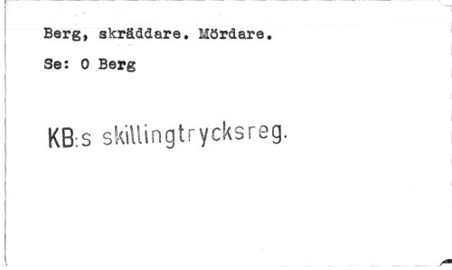 //// Berg, skräddare. Mördare. Se: O Berg //// KB;S sk\Ui n g t r y eks reg. ////