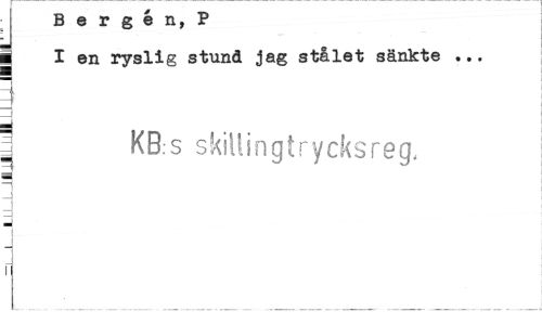 //// B e r g e n, P | I en ryslig stund jag stålet sänkte ... //// j KB.s skillingtrycksreg, //// -l //// r ////