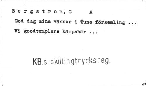 //// Bergström, G A God dag mina vänner i Tuna församling ... Vi goodtemplara kämpahär ... //// KB:S skillingtrycksreg. ////