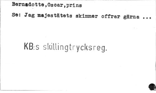 //// Bernadotte,Os car,prins //// Se: Jag majestätets skimmer offrar gärna ... //// KB:S skillingtrycksreg. //// « ////