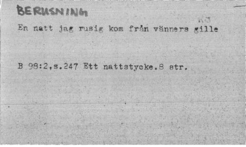 //// feEfcittNtfcifrt //// IV * •- //// En natt .jag rus ig kom från vänners gille //// ¦ //// B 98:2,3.247 Ett nattstycke.8 str. //// ¦ ¦ //// » //// r 1 ////