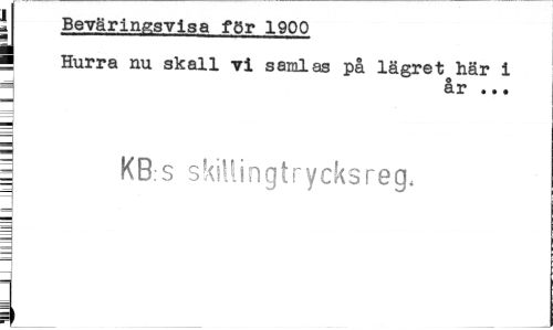 //// I Beväringsvisa för 1900 //// ! Hurra nu skall vi samlas på lägret här i =| år ... //// I KB s skiliingtrycksreg. ////