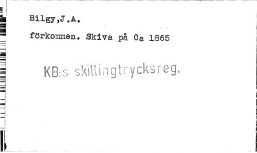 //// 11 //// | Bilgy,J.A. //// S förkommen. Skiva på Oa 1865 //// ! KB:S s killin g t rycks re g* ////