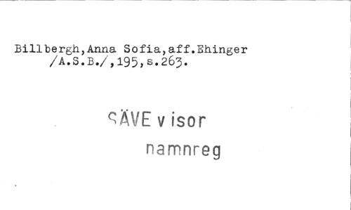 //// Billbergh,Anna Sofia,aff.Ehinger //// /A.s.B./,195,s.263. //// ^ÄVE v isor namnreg ////