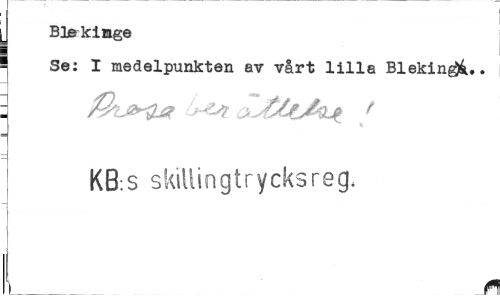 //// Blekinge //// i Se: I medelpunkten av vårt lilla Bleking.. //// : h&t aJfct&fajt t //// KB:S skillingtrycksreg. //// i___ f ////