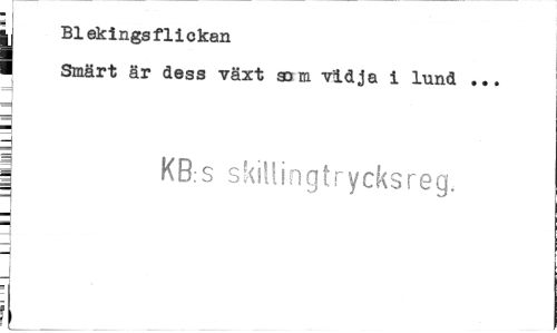 //// Lj Blekingsflickan //// 1 Smärt är dess växt som Vid ja i lund ... //// H - //// | //// | KB:S skillingtrycksreg. //// i d //// -i 3 //// ! ////