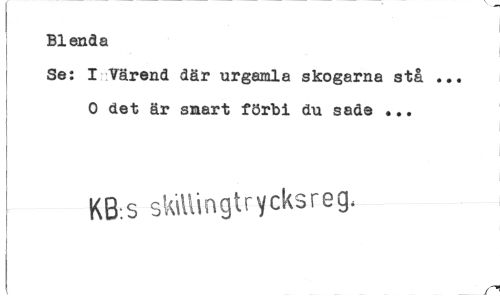 //// Blenda //// Se: I Värend där urgamla skogarna stå ... 0 det är snart förbi du sade ... //// KB.s skAlingtrycksreg. //// r ////