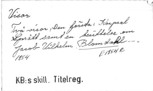 //// i V/r-f " f/frta //// KBrsskill. Titelreg. ////