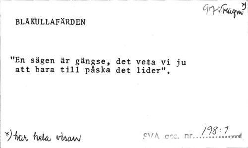 //// BLÅKULLAFÄRDEN //// "En sägen är gängse, det veta vi ju //// att bara till påska det lider". //// vtaoaaJ cva nr...W ////
