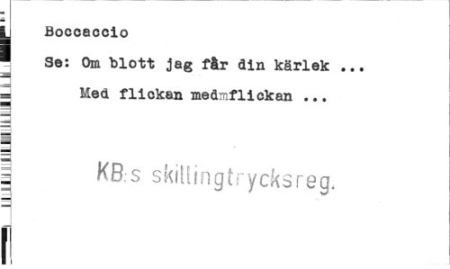 //// L Boccaccio //// ¦ Se: Om blott jag får ain kärlek ... i Med flickan medmfliekan ... //// | KB.-s skiltingtrycksreg. f ////