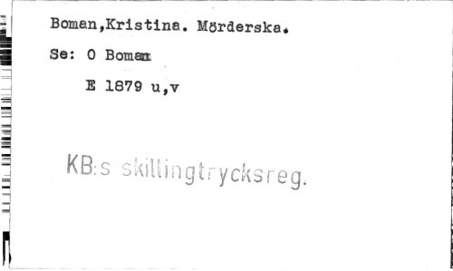 //// I //// j Boman,Kristina. Hörderska. //// | Se: O Boman //// Ij E 1879 u,v //// | KB:s skillingtrycksreg. //// r ////