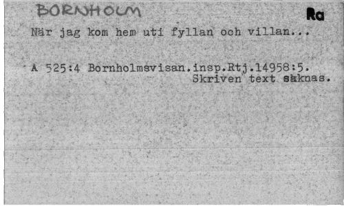 //// ! När jag kom hem uti fyllan och villan.., //// 'A 525:4 Bo rnholmsv i san. insp.Rt j.l4958:5. //// Skriven' text säknas. ////