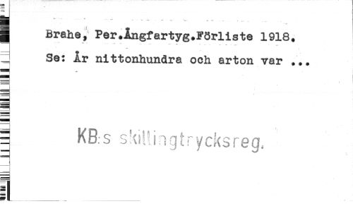 //// y ¦...- //// Brahe, Per.Ångfartyg.Förliste 1918. _ Se: År nittonhundra och arton var ... //// I KBs skillin g t rycksreg. //// _ //// 5II ___ ////
