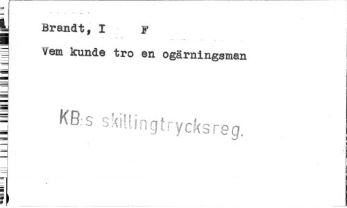 //// U Brandt, I F //// | vem kunde tro en ogärningsman //// = //// I K B s skillingtrycksreg. i //// i r ////